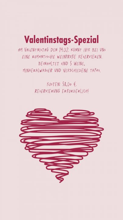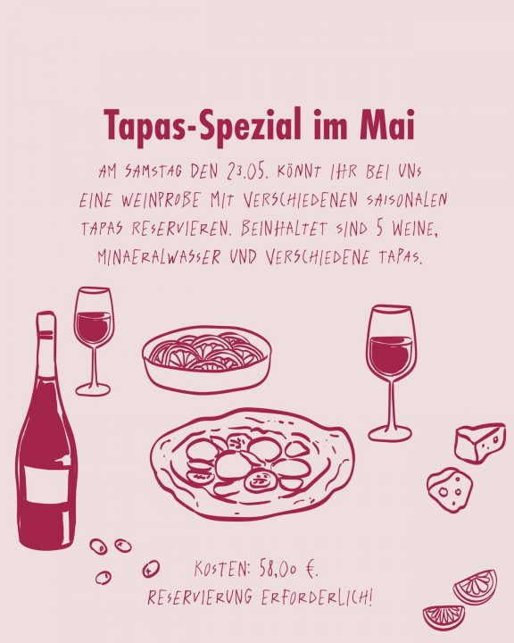 Ihr wählt die Stückzahl der zu probierenden Weine aus (3-5 Weine) und wir machen eine erlebnisreiche Weinprobe. Dazu gibt es Flammkuchen und Wasser. Der Preis pro Person ist bei 3 Weinen 31,00 €, bei 4 Weinen 36,00 € und bei 5 Weinen 41,00 €. Die Weinprobe ist ab 4 Personen buchbar und beinhaltet auch eine Flasche Mineralwasser und 1 Flammkuchen je Person.